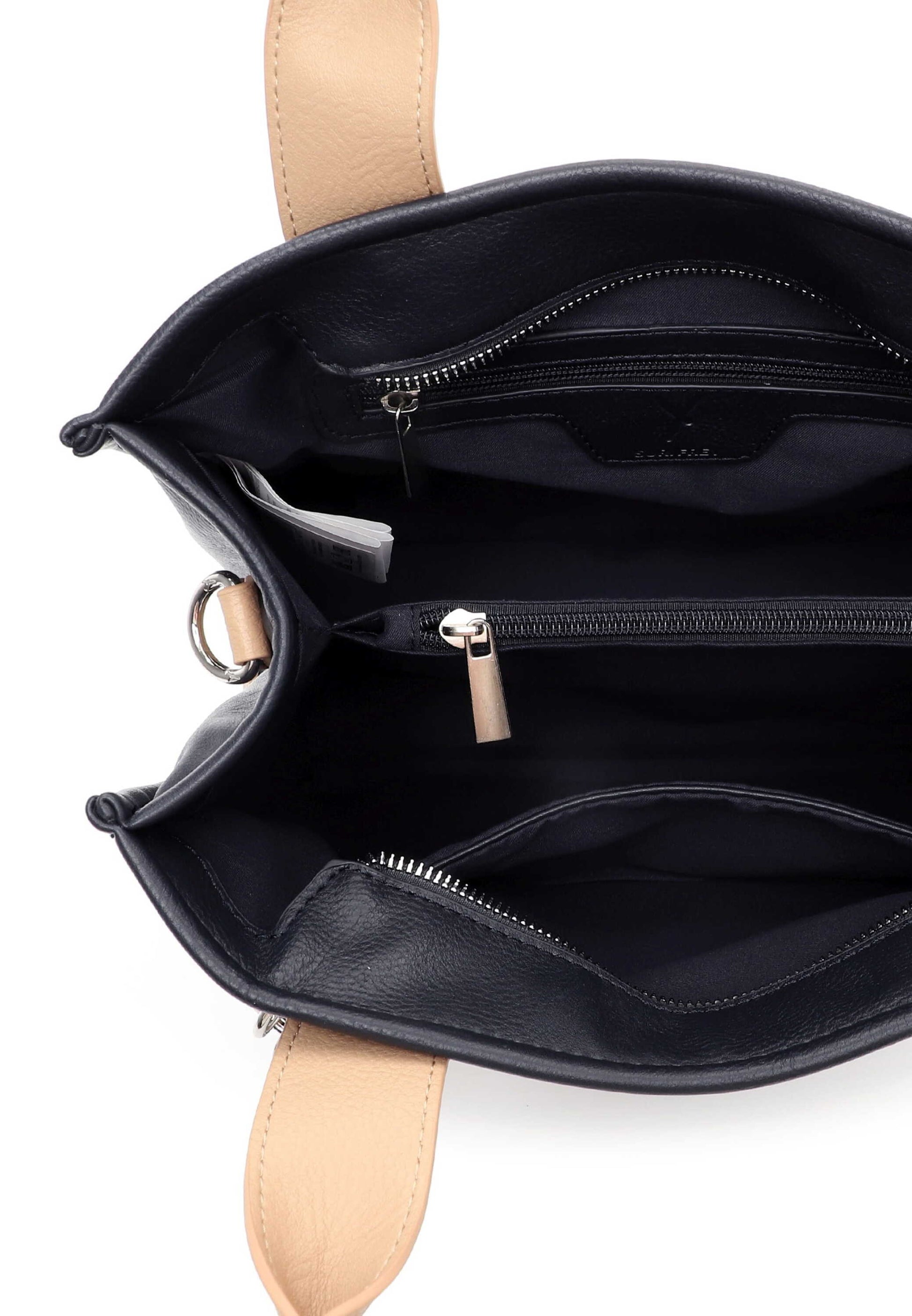 SURI FREY kennt die Wünsche ihrer Kundinnen genau: Offenheit, Lebensfreude und echte Verbindungen – genau das spiegeln die Designs wider. Im Inneren sorgt ein übersichtliches Hauptfach für Ordnung, während die Reißverschluss-Mittelwand wichtige Dinge sicher verwahrt. Ein zusätzliches Rückfach mit Reißverschluss bietet schnellen Zugriff auf Essentials.
