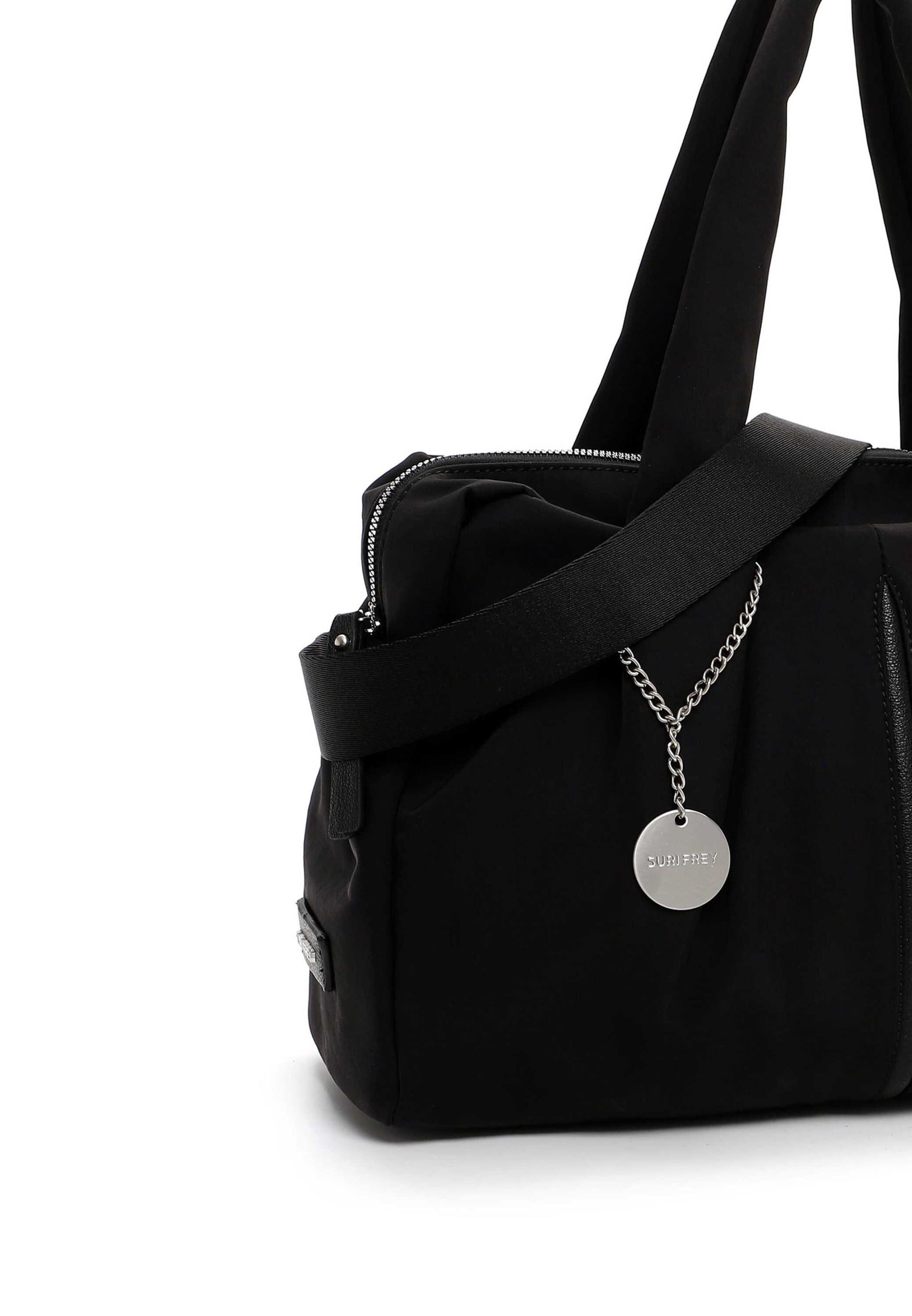 Persönlichkeit zeigen - mit SURI FREY Natürlich, selbstbewusst und brillant - so zeigen sich Frauen im Alltag. Selbstredend am liebsten mit ihrer Lieblingstasche. Mit SFY Pauly - dem schicken Shopper aus Feinsynthetik mit Logo-Patch - ist die liebste neue Wegbegleiterin jederzeit dabei. Er ist ein lässiges Statement für den Alltag. Ein Shopper auf den man zählen kann. Das Modell besteht aus Feinsynthetik und lässt sich mit einem Reißverschluss verschließen. Die Nylon-Optik und das Uni-Design sind fein gearbeitet und verleihen dem Shopper einen edlen Look. Wer viel draußen ist, will einfach immer einen besonderen Auftritt hinlegen. SURI FREY hat genau die Accessoires, die so gut gefallen und die jedes Outfit gekonnt vervollständigen. Der Shopper hat ein übersichtliches Hauptfach und eine Reißverschluss-Mittelwand, die praktisch für die geschützte Aufbewahrung wichtiger Dinge ist. Das Rückfach mit Reißverschluss ist ideal, um weiteren Stauraum zu schaffen und Dinge einfach griffbereit zu haben. Für alle, die eine weiche Haptik lieben - SFY Pauly ist angenehm anschmiegsam. Ein Logo-Patch schmückt optisch und hebt das besondere Design dieses neuen Favoriten hervor. Dieser neue Lieblingsbegleiter wird zwei Tragegriffen einfach über der Schulter getragen. Manchmal braucht man mehr Platz im Shopper - für solche Fälle eignet sich das Modell ideal, weil hier wirklich alles hineinpasst, was unterwegs dabei sein muss.